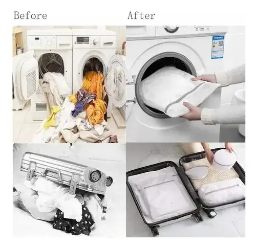 El pack de bolsas protectoras multiuso es la solución práctica para mantener tu ropa delicada en perfecto estado, ya sea durante el lavado en máquina, a mano o al momento de guardarla. Su malla ultraresistente protege encajes, blusas, ropa interior y hasta calzado, evitando daños, estiramientos o la pérdida de prendas pequeñas como calcetines.